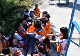 本次拓展训练的最后一个项目是翻越毕业墙,全体学员打破了连队间的束缚,分成了两支队伍,凝聚成两个整体,所有学员们忘记了国籍的不同,性别的差异,克服重重困难,纷纷表现出甘当人梯的精神,齐心协力、共同进退,最终两支队伍均少于预计时间征服了毕业墙,这种成功的喜悦有的化作泪水,有的化作微笑,绽放在每一名队员的脸上。
