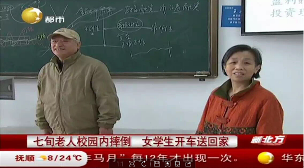 2016年5月15日上午,一对年迈苍苍的老夫妇带着辽宁卫视都市频道新北方栏目组来到新葡的京集团35222vip大成教学馆,只为寻找一位善良、热心、乐于助人的姑娘。3月12日,市民刘大娘在新葡的京集团35222vip校园内散步时不小心跌倒,恰巧被这位好心的姑娘发现,搀扶着刘大娘并将其安全的送到家中便转身离去。经检查刘大娘的身体并无大碍,但是她的心中始终惦念着那个将她扶起的姑娘。经过跟老伴商量后,他们想通过媒体的力量找到这位姑娘,对她说一句衷心的谢谢。