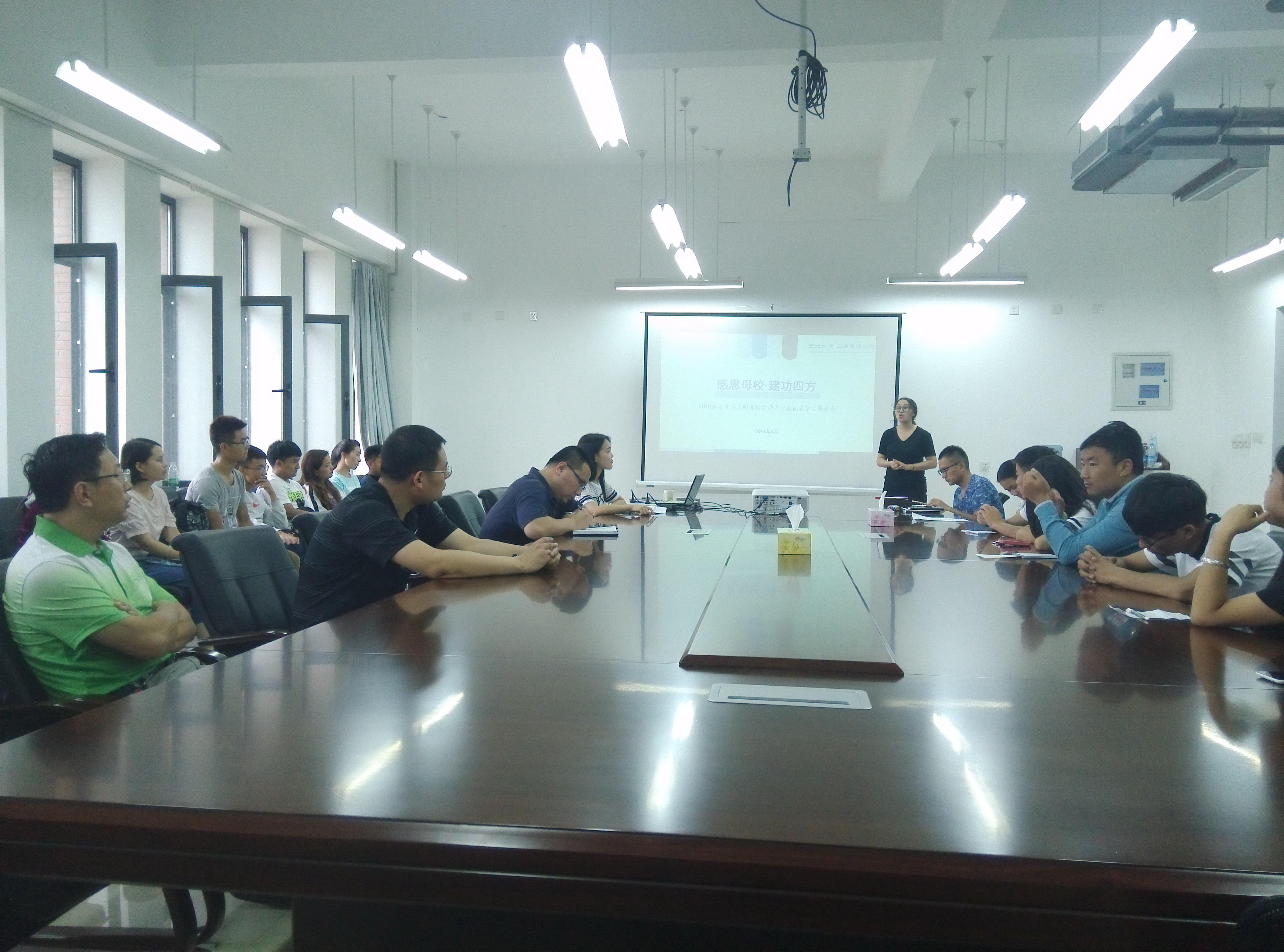 会议结尾,严立宁老师对2016届少数民族学生的在校表现给予肯定,祝贺大家顺利完成学业,并希望同学们能够秉承新葡的京集团35222vip校训精神,勇于承担社会责任,建设家乡和祖国,同时与低年级的少数民族学生交流,鼓励大家以此为榜样,做好学业规划。
