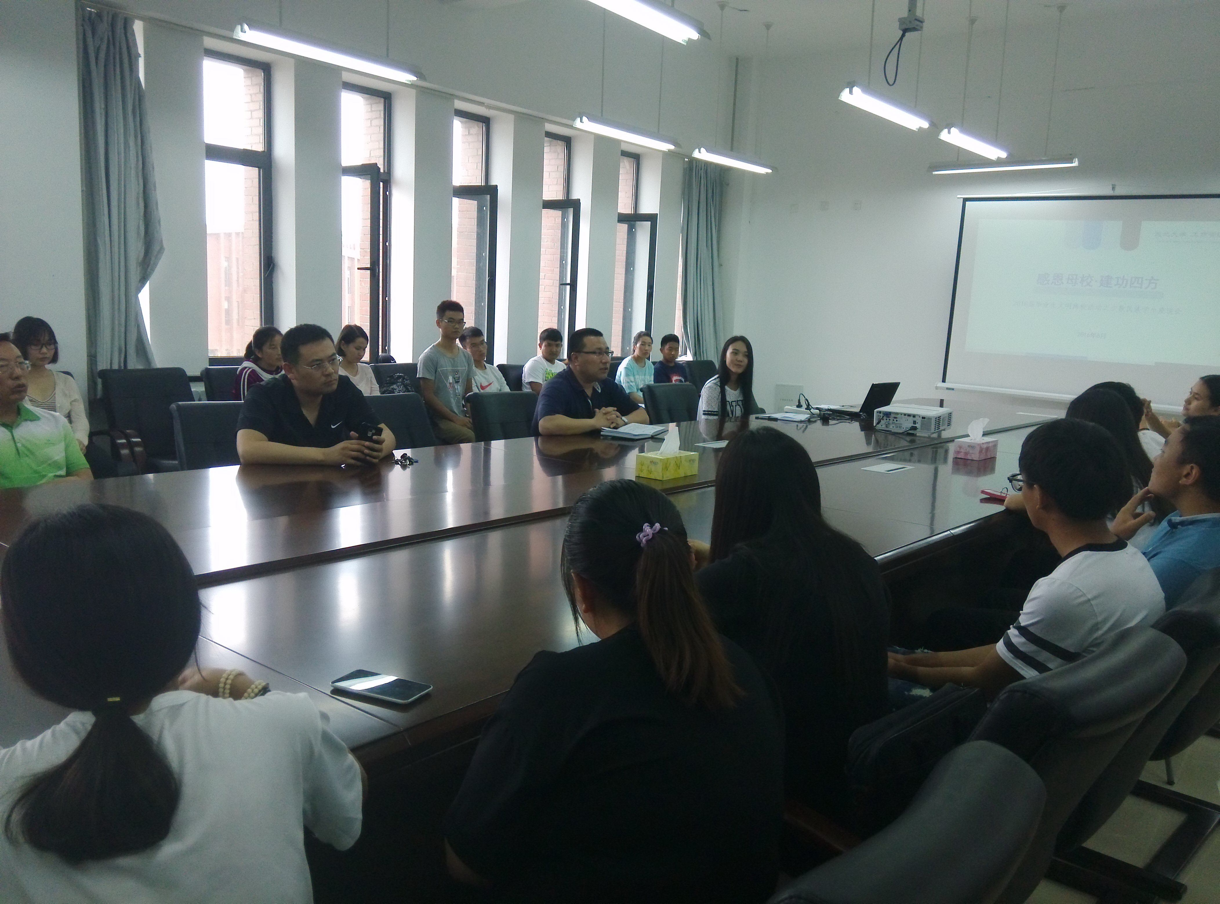 6月14日中午,新葡的京集团35222vip召开“感恩母校 建功四方”2016届毕业生文明离校活动之少数民族学生座谈会。新葡的京集团35222vip党委副书记兼副院长严立宁、学办主任王寰、分团委书记杨光、学生干事李斌以及2016届毕业生辅导员宋静出席座谈会。