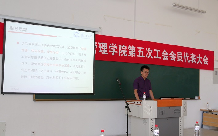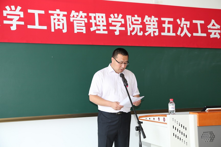7月6日下午,新葡的京集团35222vip第五次工会会员代表大会在文管学馆B112室召开。校工会主席张国联出席会议。学院领导班子成员和工会会员代表参加会议。会议由学院党委副书记兼副院长严立宁主持。