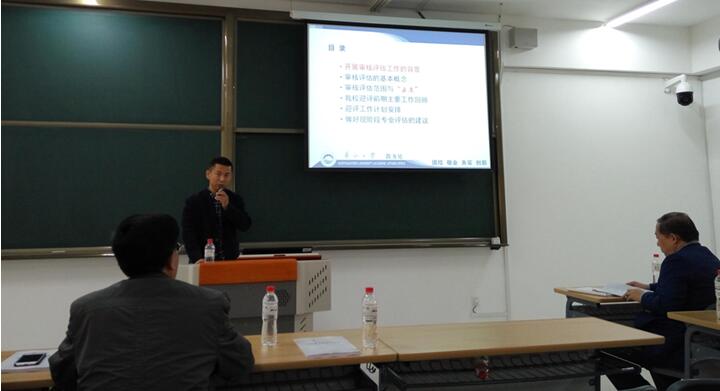、审核评估的基本概念、审核评估范围与“五度”、迎评前期主要工作回顾、迎评工作计划安排、做好现阶段专业评估的建议六个方面对审核评估工作作了详细的讲解,使参会全体人员对评估工作有了全面的认识和了解。