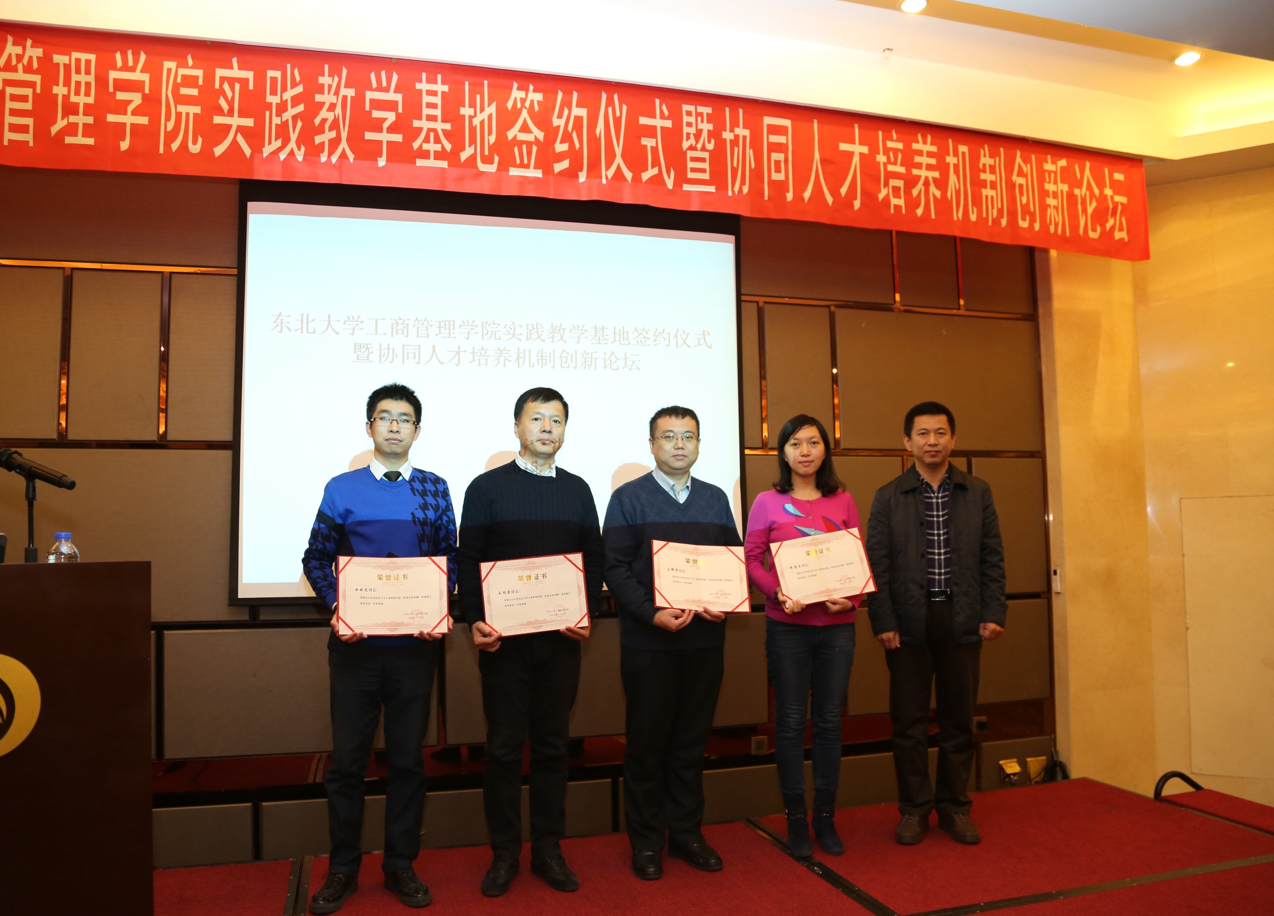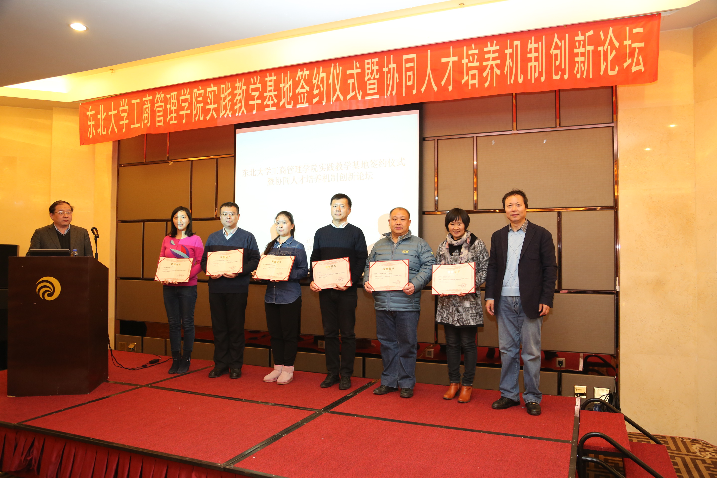会议首先进行优秀实践教学基地和优秀企业导师颁奖活动。朱志良宣读了“优秀实践教学基地”的获奖名单,并为获奖的七家单位颁发证书。随后,滕超宣读“优秀企业导师”的获奖名单,并为企业导师颁奖。