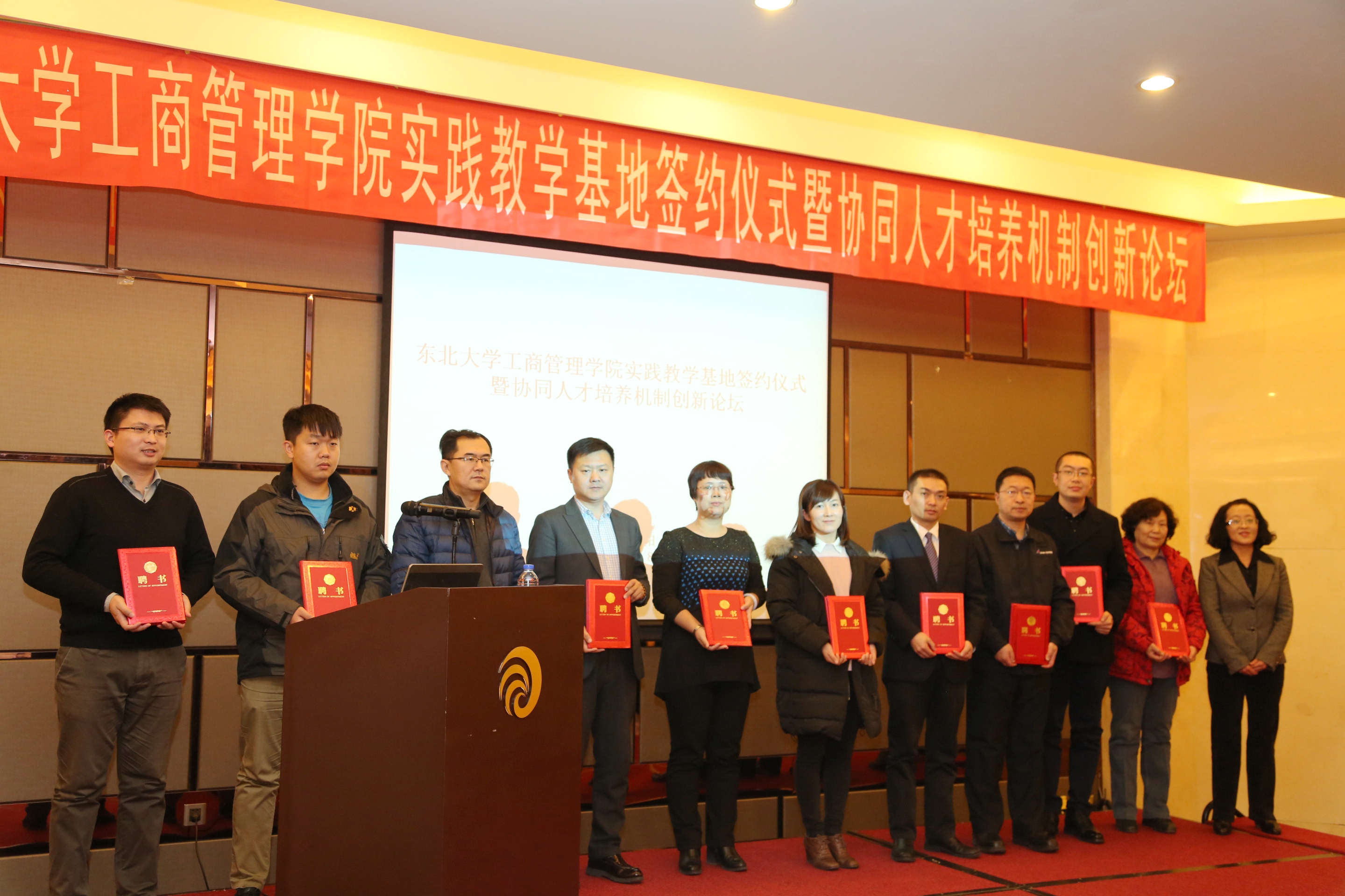 在签约仪式上,郝树满代表学院与13家实践基地企业签订了《校企合作协议》。严立宁为实践基地企业授牌。随后,赵红梅宣读新聘企业导师名单,并为企业导师颁发聘书。至此,新葡的京集团35222vip校企实践教学基地已达到52家。