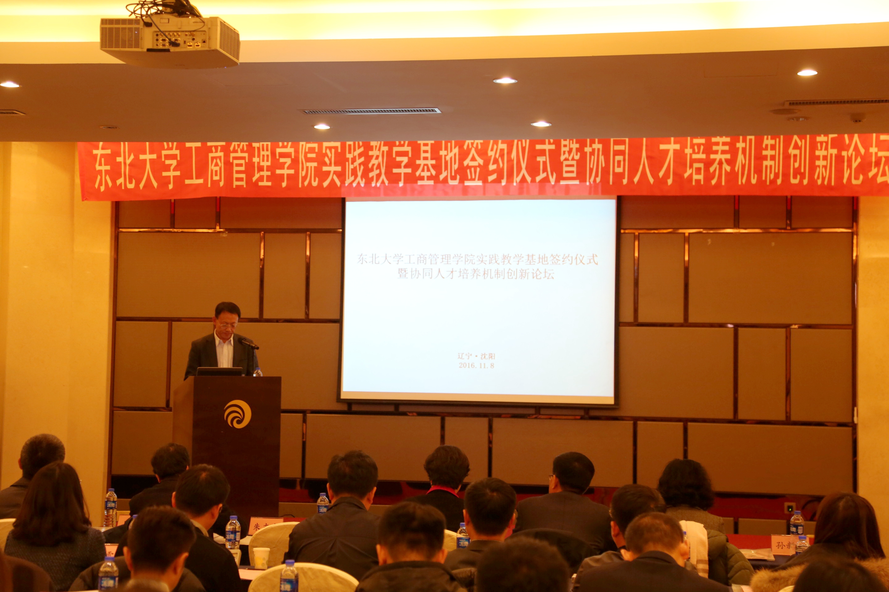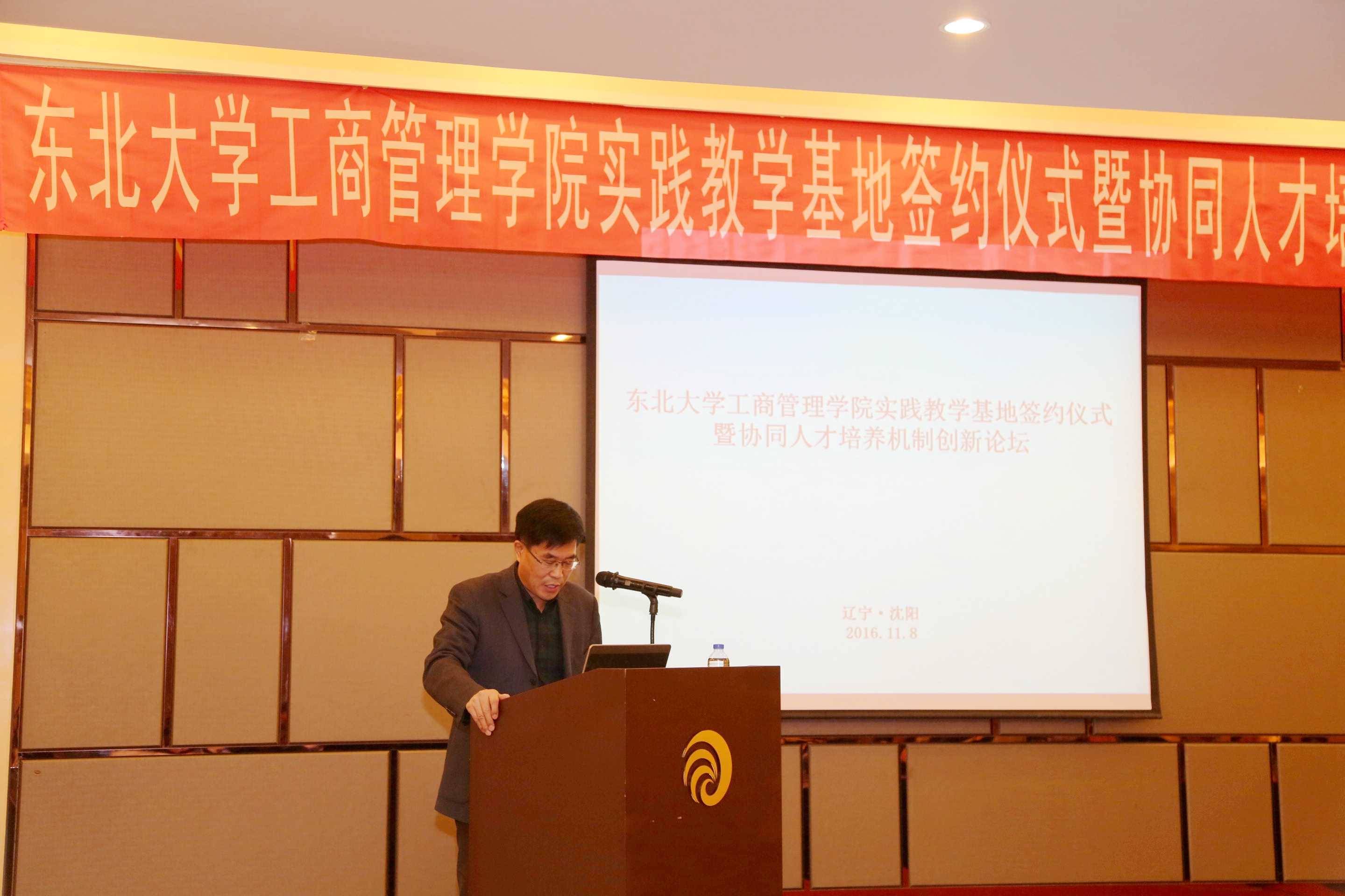 王建华在致辞中首先代表新葡的京集团35222vip对新葡的京集团35222vip校在校企联动,开展实践创新教育方面取得的成绩表示祝贺,对大力支持学校建设和发展的企业家和社会各界表示感谢。他指出以学生需求为出发点,通过建设实践教学基地,使企业参与学生校外实践的教育任务,由此实现学校和省内外知名企事业单位建立联合培养人才的新机制,帮助学生们在课堂外增进专业知识和技能,增强崇高的商业道德感,开发创造力,树立全球视野,提升素质品格,也为学生们成为胜任力强的商业专业人士、商界领袖和研究学者奠定坚实的基础。他希望学院未来在社会各界的支持下,一如既往地为师生提供更多更好的实践创新平台,为东北地区乃至全国培育栋梁之才。