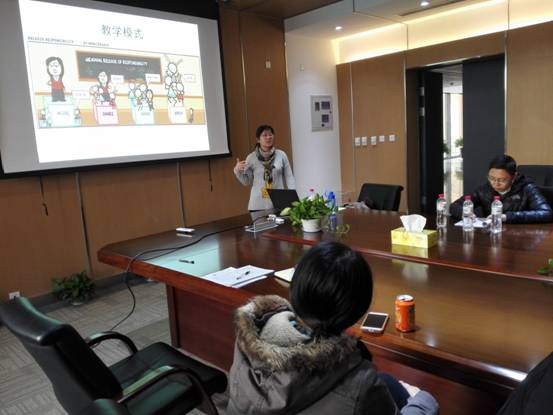 郭莉老师结合自己的授课经历和前阶段出国访学的收获,主要从四个方面包括传统教学模式的特点,“以学生为中心”的教学模式及适用范围,角色讨论、鱼缸讨论、立场辩论等教学方法,课堂交互软件及应用,向在座老师和学生讲解了“以学生为中心”的教学模式的特点,什么是布卢姆立体教学体系以及从“以教师为中心”转变为“以学生为中心”的途径。郭莉老师准备充分,讲解细致入微,令在场人员受益匪浅。