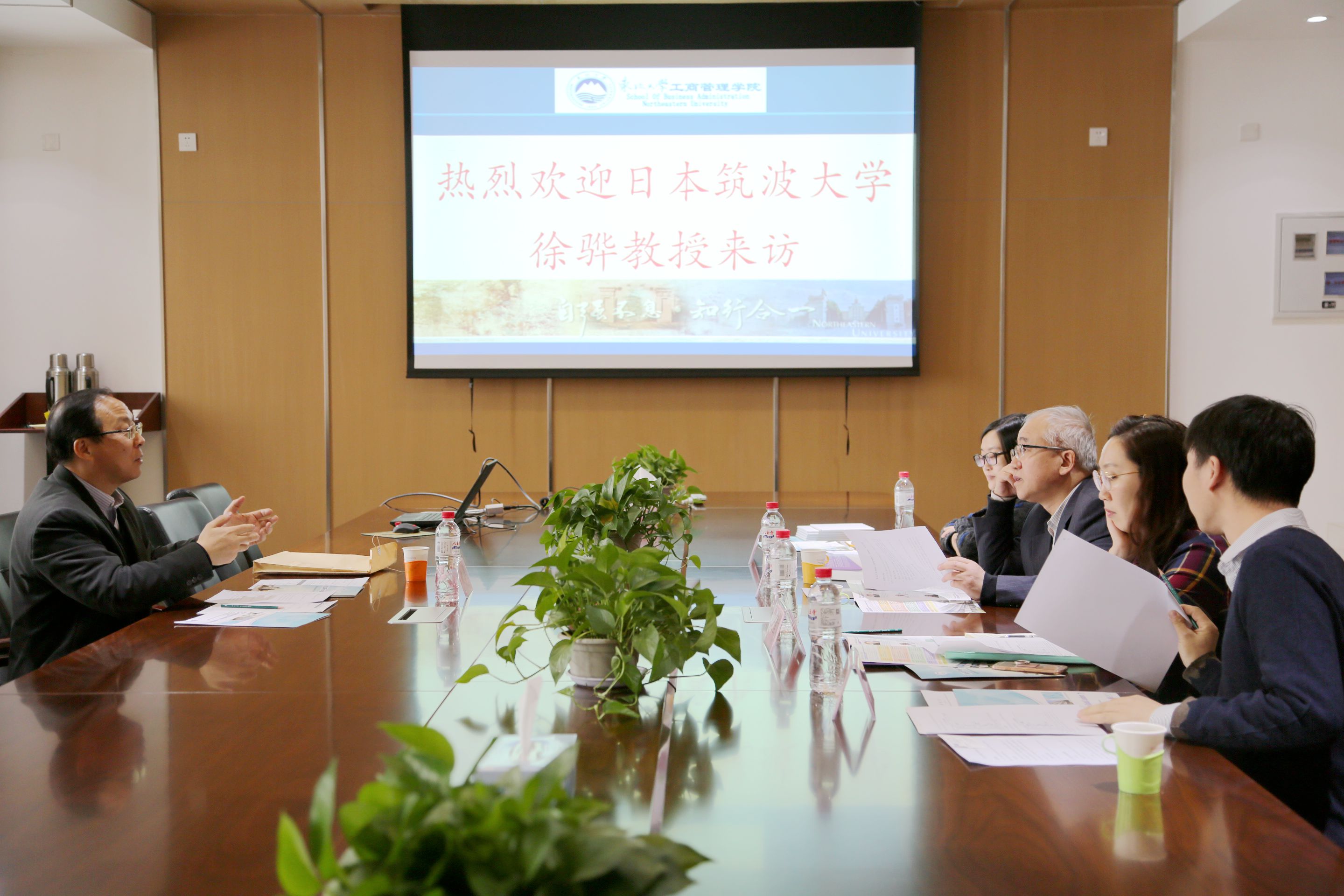 2016年12月23日上午, 日本筑波大学徐骅教授到访新葡的京集团35222vip。新葡的京集团35222vip院长马钦海,MBA课程项目管理中心主任王世权,MBA课程项目管理中心办公室主任王星戈在文管学馆B座306室接待了来访客人。