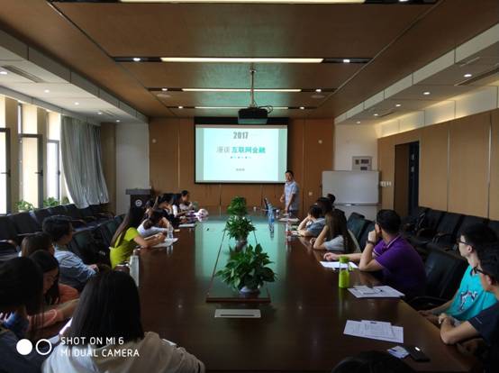 史云欢迎并介绍了陈皓辉。陈皓辉以“漫谈互联网金融”为题,从互联网金融的定义、诞生、发展、业态、特征、机遇、案例及建议八个方面为学生们呈现了系统的互联网金融体系,同时结合自身的工作经历以平安陆金所的案例为学生讲解了相关互联网金融理论。陈总讲完后史云发表了自己的感想,听完讲座之后受益匪浅,能够在这里了解到互联网金融领域的前沿动态对理论教学的帮助也很大。李亚宁老师就学生们的专业与就业提出了问题,陈总进行了回答。学生们就互联网金融领域感兴趣的问题同陈皓辉进行了讨论和交流。
