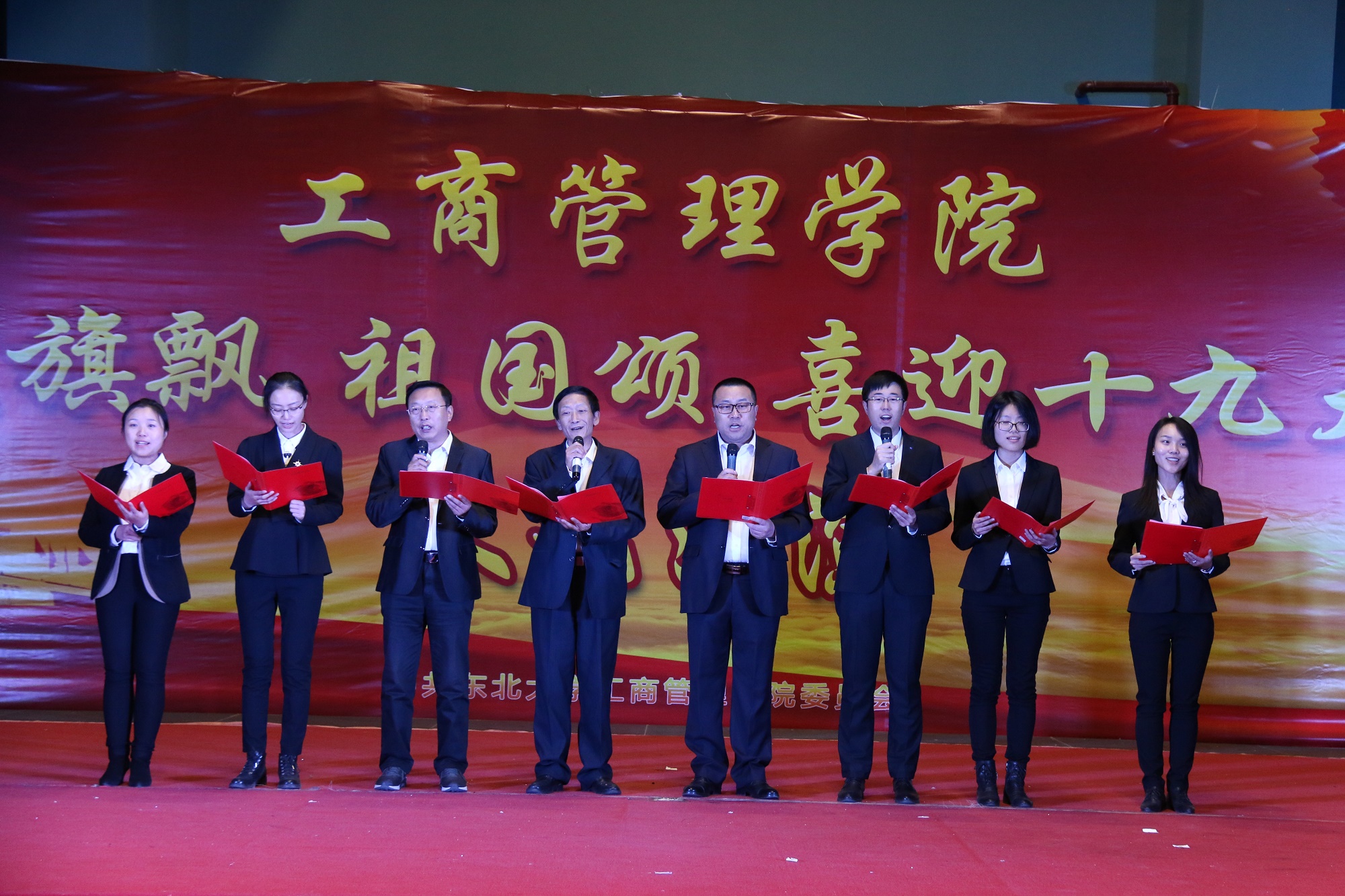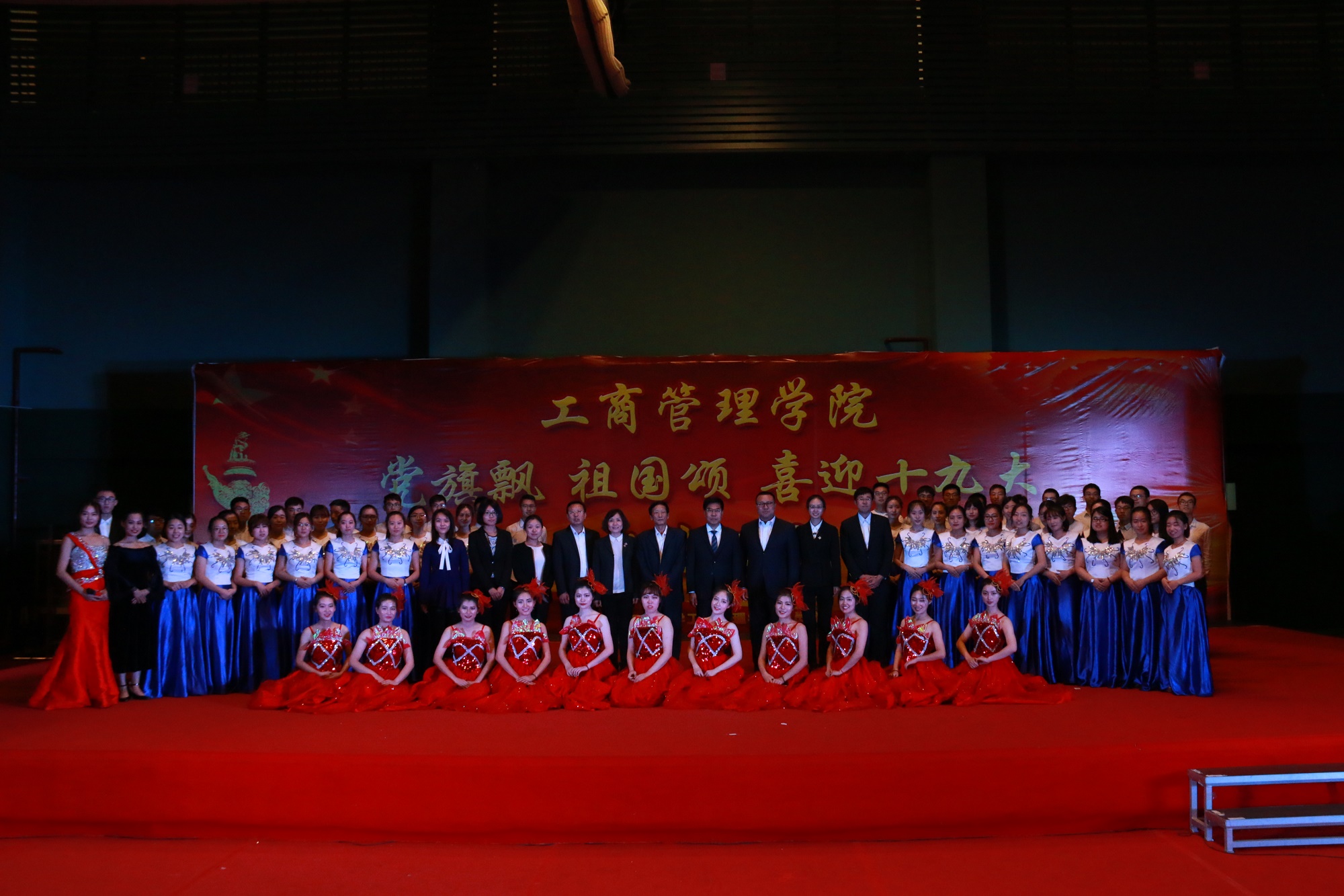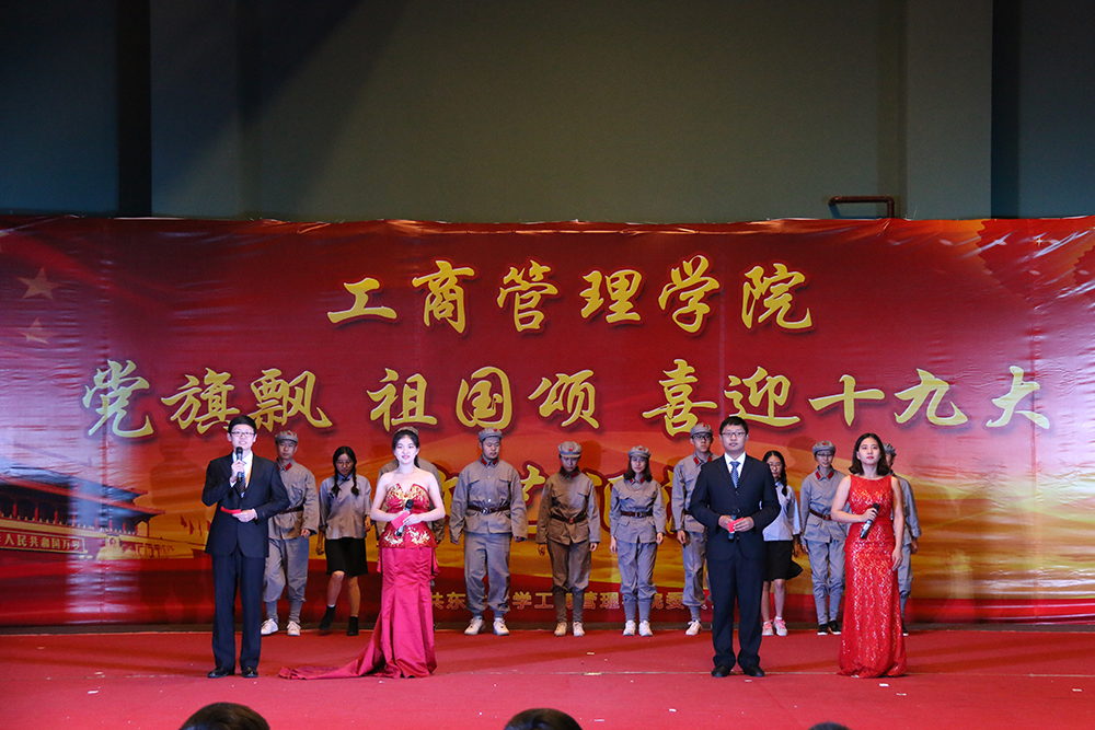 10月13日晚6:30,由新葡的京集团35222vip党委主办的“党旗飘,祖国颂”喜迎十九大主题文艺汇演于浑南校区风雨操场一楼东厅成功举办。新葡的京集团35222vip组织部副部长姜玉原,学生工作处副处长张哲,团委副书记刘海军,学生指导服务中心副主任吴政新,学院党委书记郝树满,副院长郁培丽、孙新波、赵红梅,党委副书记兼副院长严立宁及学院教职工代表出席晚会,学院各年级学生观看晚会。