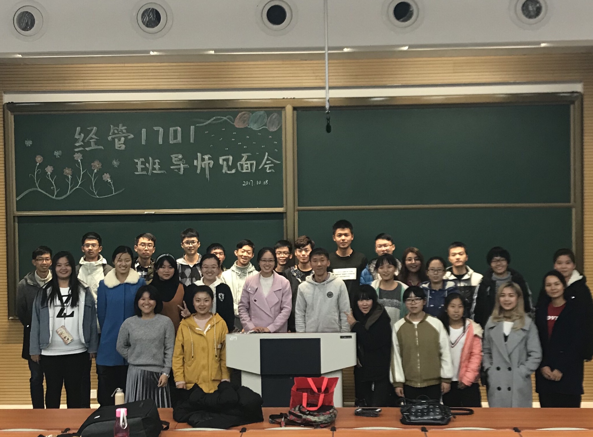 10月18日下午4点,经管1701班在一号楼A207召开班导师见面会,班导师兰博老师与辅导员王鹤棋老师参加此次活动。