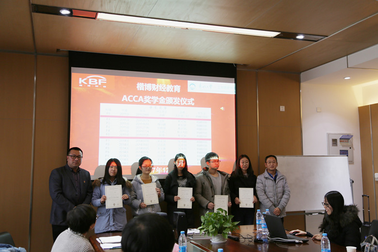 座谈会后,在文管B306室进行了楷博财经教育奖学金的颁奖仪式,严立宁为学生介绍了楷博财经奖学金并对楷博的企业家精神表示了感谢。嘉宾和领导为新葡的京官网14级、15级ACCA方向班共13名学生颁发了楷博财经教育奖学金和证书,许波对楷博财经教育给予的支持表示了感谢,对学生提出更高的要求和期待。