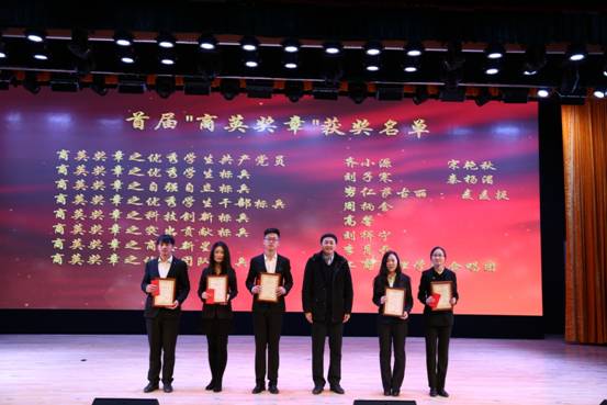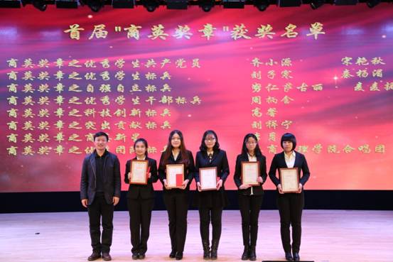 郝树满宣读“德馨业勤”优秀班导师,“创新创业”优秀指导教师表彰文件,授予王海涛、王艳辉、刘军、许波、朱春红、孙新波、辛冲、陈桂云、郑红、袁知柱、蒋忠中“德馨业勤”优秀班导师荣誉称号,授予王世权、许波、朱宝琳、孙新波、李永立、俞竹超、贾建锋、蒋忠中“创新创业”优秀指导教师荣誉称号。赵红梅宣读首届商英奖章表彰文件,授予齐小源、宋艳秋、刘子寒、秦杨湄、周柄含、努仁萨古丽·麦麦提、高馨、刘翔宁、李月开先进个人荣誉称号,工授予商管理学院合唱团先进团队荣誉称号。张国臣、马天威、闫研分别为获奖教师与学生颁奖。