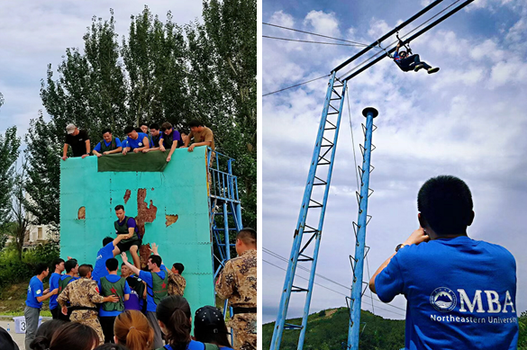 在接下来紧张的训练过程中,各连队学员团结拼搏,共同奋斗,学员们依次完成了连队展示、信任背摔、高空断桥、盗梦空间、毕业墙等项目。两天的互动活动内容将“团队合作精神”体现得淋漓尽致,而这也是每个MBA成员未来职场上都必须拥有的基本素质。