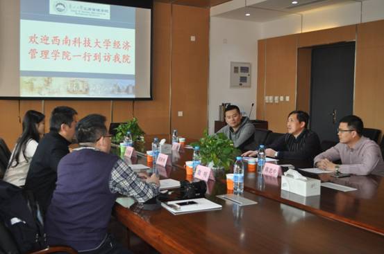 2018年11月13日,西南科技大学经济管理学院副院长胡树林、院长助理兼党政办主任袁明及解丽娜老师一行来访新葡的京官网,学院副院长樊治平教授、院长助理蒋忠中教授、院办主任王寰接待并与来访客人举行座谈。