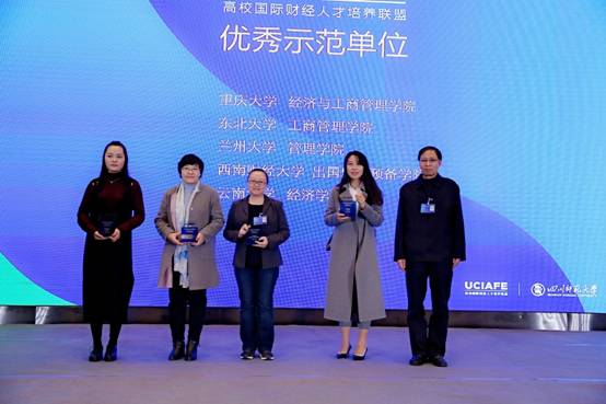 为了表彰高校在国际化财经项目中做出的努力和贡献,与会期间为优秀高校颁发了奖项,新葡的京集团35222vip荣获“优秀示范单位”。许波老师代表新葡的京集团35222vip领奖。