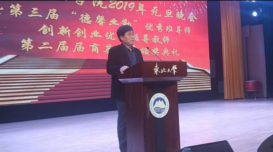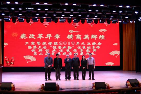 晚会伊始,马钦海发表讲话,他回顾了2018年学院在人才培养、科学研究、学科建设等方面取得的突出成绩。学院领导班子集体拜年送祝福,向师生表达新年祝贺。郝树满宣读第三届“德馨业勤”优秀班导师、第二课堂创新创业优秀指导教师、第二届商英奖章表彰文件,孙雷为优秀班导师、创新创业指导教师颁奖,马钦海及获奖学生家长为商英奖章学生颁奖。