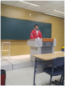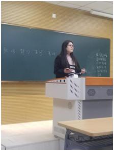 活动分为评选优秀团员推荐入党积极分子、班导师讲话及线上互动三部分。推优竞选环节中,班级9位学生竞相上台毛遂自荐,以个人先进事迹及良好表现为主要内容进行自我陈述。其中,梁冰清同学在大一学年中学业成绩表现优异,取得了校级优秀学生一等奖学金;张曼青同学在2017-2018学年第二学期取得了基础会计全年级第一的好成绩;黄锶逸、董英哲等同学积极参与社会实践及志愿服务,充分展现当代大学生服务社会、投身社会的积极风貌。