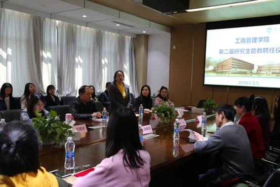 3月27日,新葡的京集团35222vip在文管B306举行第二届研究生助教聘任仪式,学院副院长孙新波、教师代表周黎明、王晓欢、教学办主任石天、第一届优秀助教代表及第二届全体受聘助教参加聘任仪式。