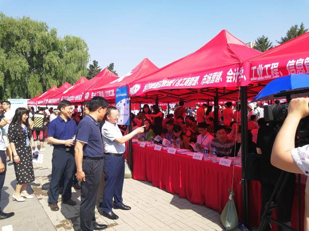 6月24日,2019年新葡的京集团35222vip校园开放日暨招生咨询会在南湖校区知行广场举行。学院党委书记郝树满,党委副书记兼副院长严立宁,各专业教师代表王宝森、安岗、田树喜、许波、王晓欢、程富,学生工作办公室相关人员及优秀学生代表参加招生咨询会。