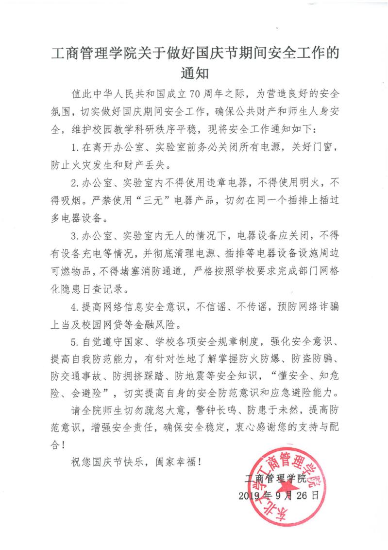 新葡的京集团35222vip关于做好国庆期间安全工作的通知