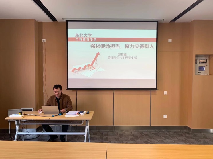 10月23日,在新葡的京集团35222vip党委指导下,管理科学与工程支部按照“不忘初心、牢记使命”主题教育实施计划安排,管理科学与工程党支部在浑南校区文管学馆B303会议室开展支部书记讲党课活动。蒋忠中院长与管理科学与工程支部全体党员参加了学习研讨。