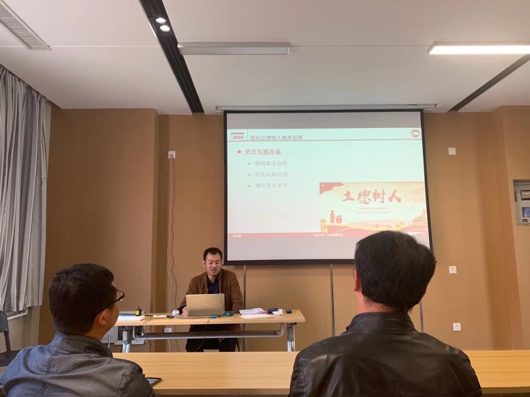 本次学习研讨会议主题是“强化使命担当,聚力立德树人”,支部书记邱若臻从以立德树人铸就教育之魂、坚持立德树人实现三全育人、落实立德树人根本任务这三个具体方面讲解习近平总书记在全国教育大会、全国高校思想政治工作会议、学校思想政治理论课教师座谈会等会议上的重要讲话精神,结合管理科学与工程学科特点,着重对“三全育人——全员育人、全程育人、全方位育人”谈学习体会。支部全体党员对如何落实“三全育人”开展了热烈讨论,明确了管理科学与工程学科在“三全育人”方面的任务与路径。 (秦绪伟 文,曾程宽 图)