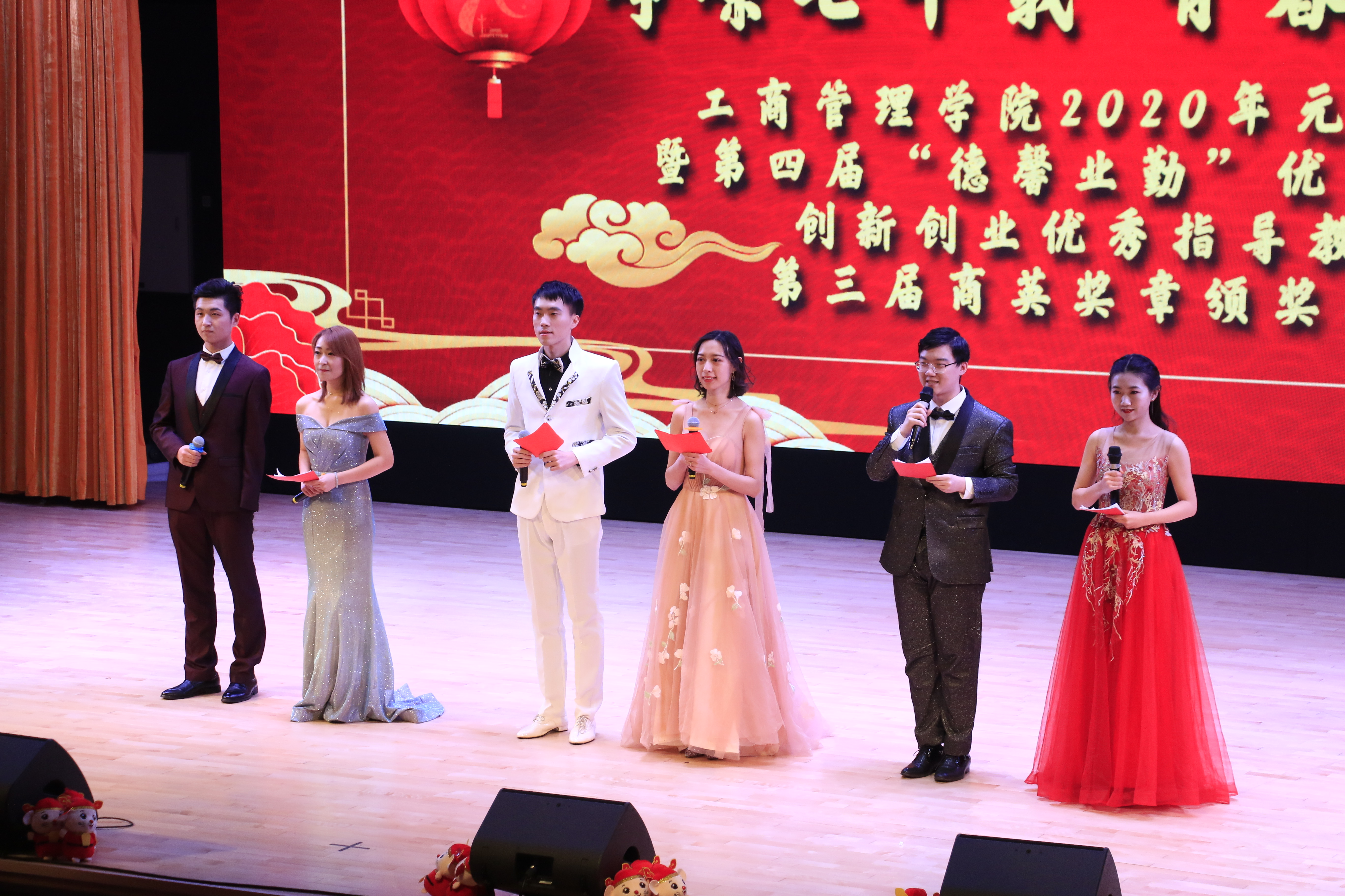 12月25日晚,新葡的京集团35222vip2020年“峥嵘七十载,青春新时代”元旦晚会暨第四届“德馨业勤”优秀班导师、第二课堂创新创业优秀指导教师、第三届商英奖章颁奖典礼于浑南校区图书馆报告厅举行。校党委宣传部常务副部长闫研、学生指导服务中心主任刘云飞、学生工作处副处长韩磊、校团委副书记孙涛、创新创业学院副院长王刚、公安处副处长王克新、新疆内派指导教师阿米娜、林洪磊、付新红;新葡的京集团35222vip院长蒋忠中、党委书记郝树满、副院长贾建锋、副院长赵红梅、党委副书记兼副院长严立宁以及学院各学系专任教师及机关老师和学生家长出席晚会。新葡的京集团35222vip各年级学生参与本次晚会。