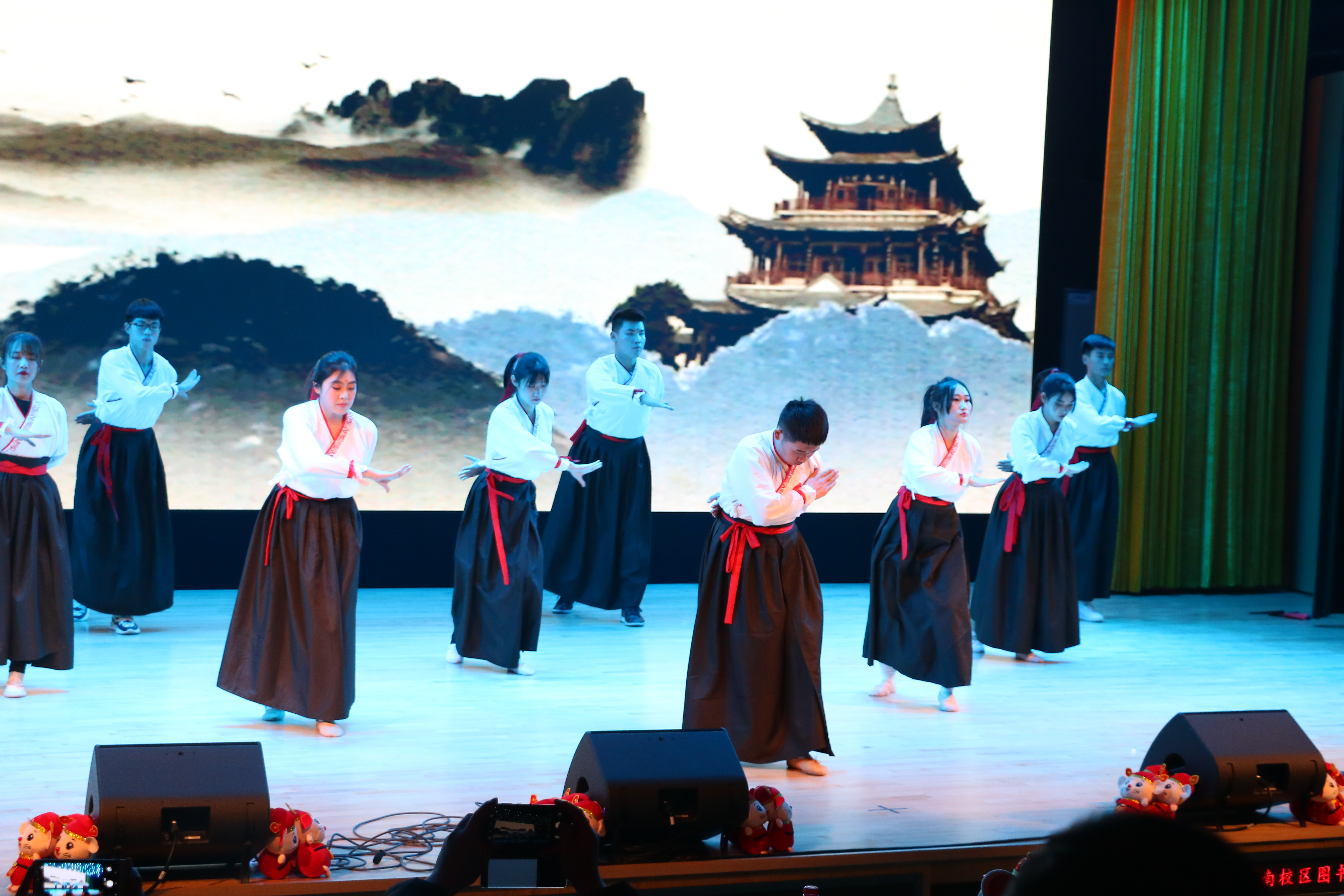 本次元旦晚会共分为“忆年华”、“秉初心”和“展未来”三个篇章。在“忆年华”篇章中,歌曲《红色》与合唱《家·国》采用了rap和新疆特色歌曲这样的创新形式,展现了对祖国的热爱和各民族间美好的友谊;“秉初心”篇章表演形式多样化,带领大家回顾了中国传统乐器和中国风舞蹈的魅力,也感受了现代舞蹈和音乐激情;“展未来”篇章将对未来的期望寄托于表演当中,用律动的旋律表达管院学子生而为赢的志向。在元旦晚会最后,学院领导、老师上台,与在场同学们同声合唱《歌唱祖国》,极具现场感染力,余音绕梁,掌声雷动。