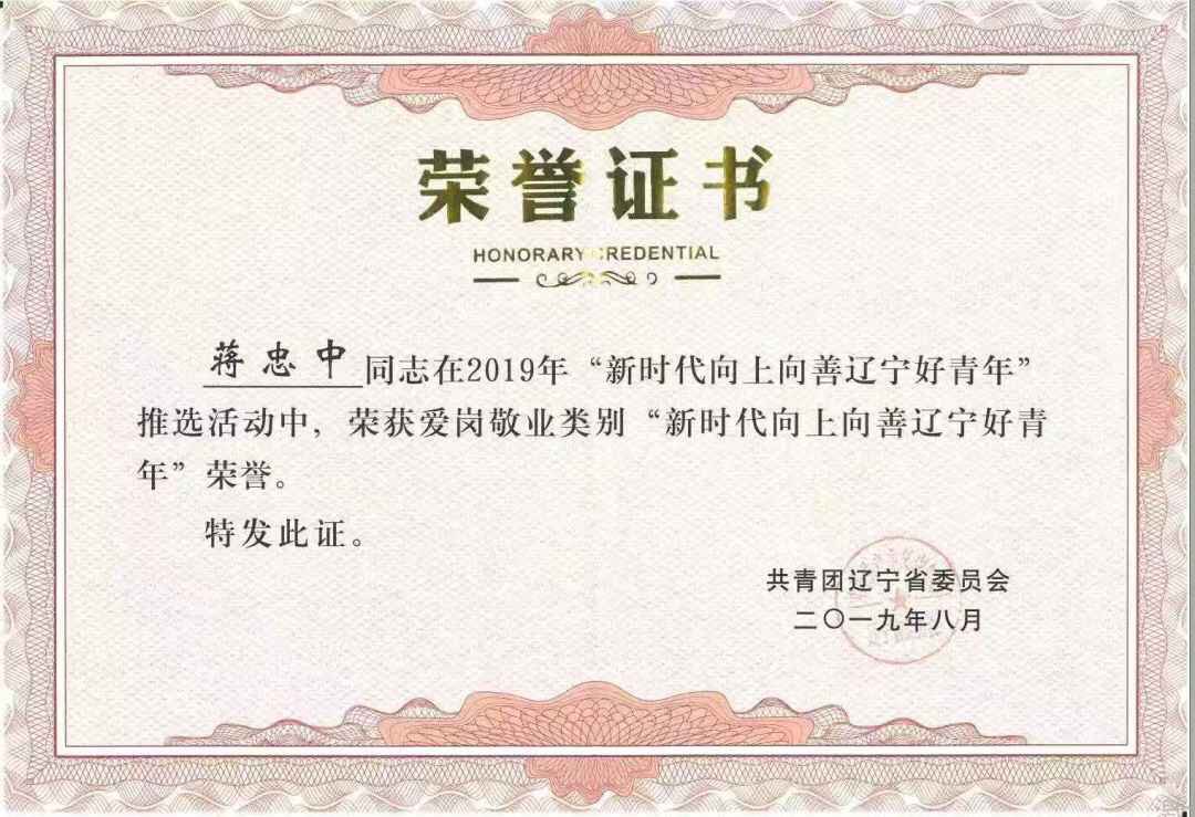 【喜报】新葡的京官网院长蒋忠中教授荣获2019年“新时代向上向善辽宁好青年”荣誉