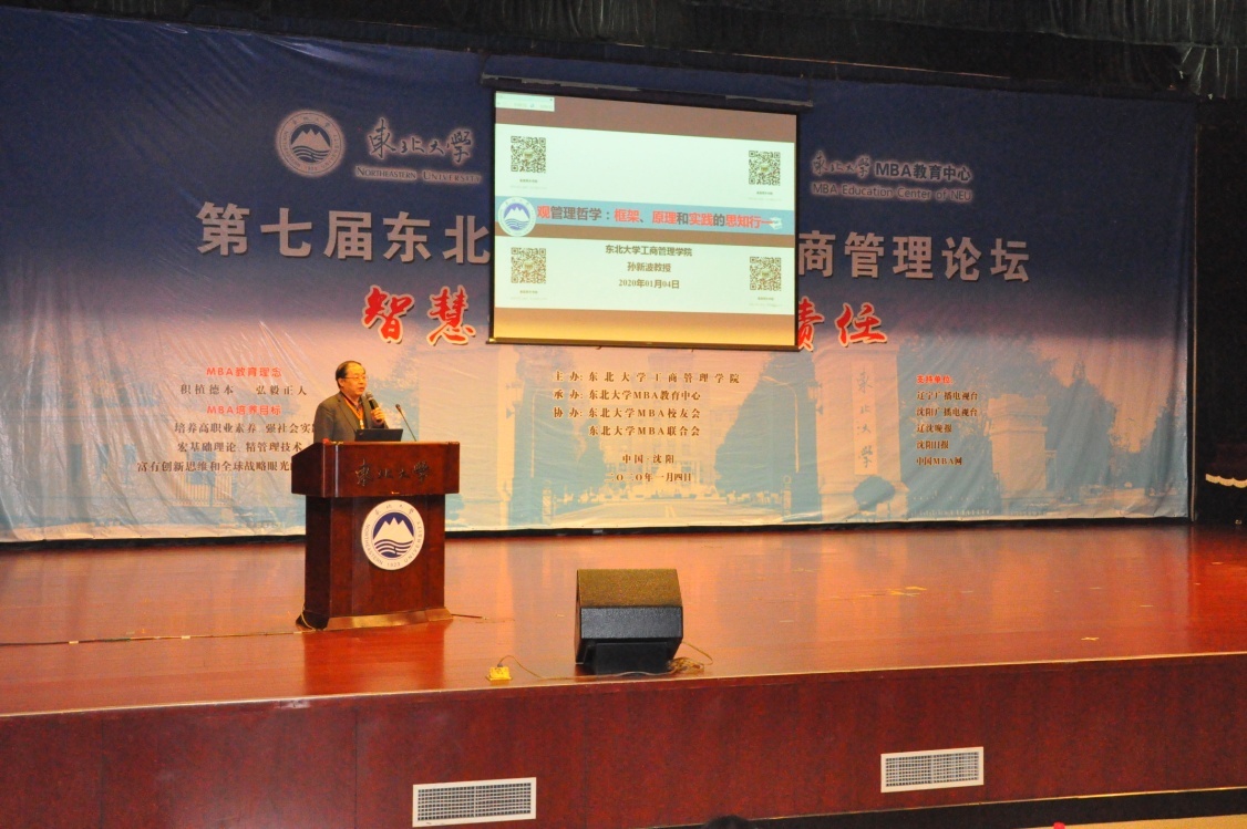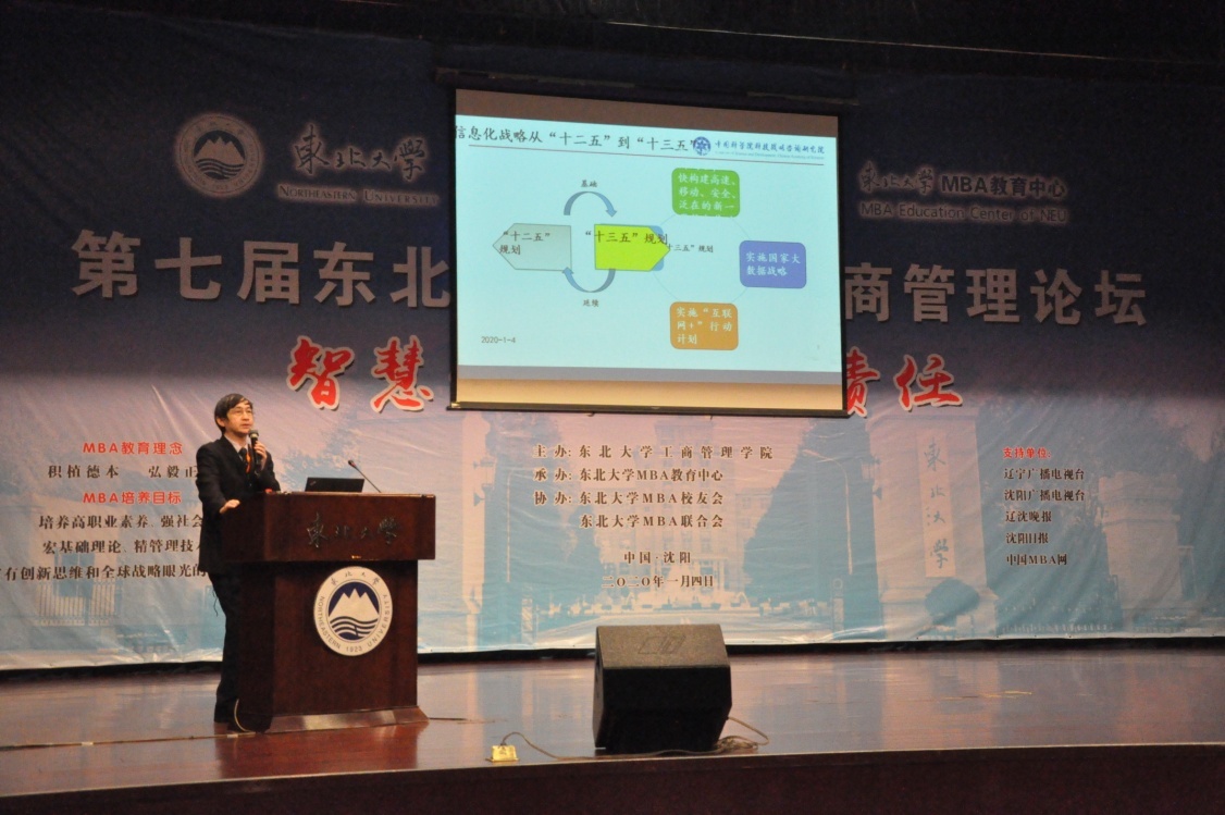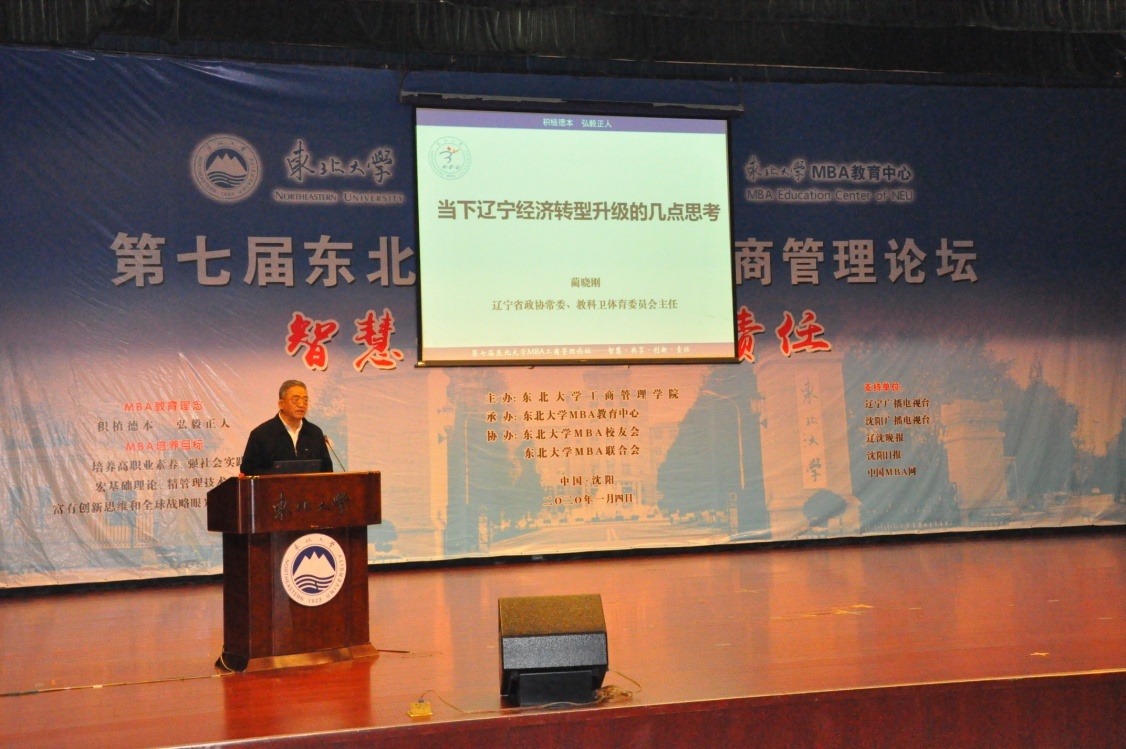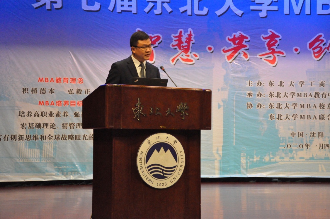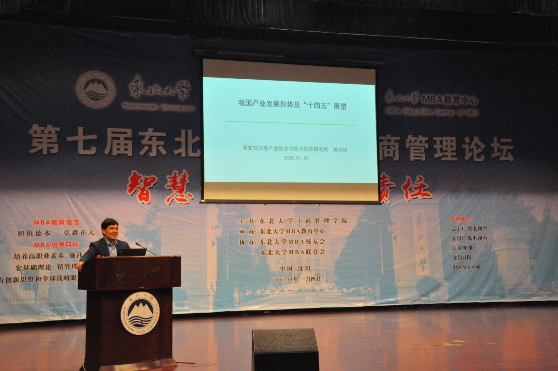 2020年1月4日上午,第七届新葡的京集团35222vipMBA工商管理论坛——智慧·共享·创新·责任在新葡的京集团35222vip汉卿会堂一楼报告厅成功举办。中国科学院科技战略咨询研究院、中国科学院大学公共政策与管理学院余江教授,国家发改委中国宏观经济研究院产业经济与技术经济研究所黄汉权所长,辽宁省政协常委、教科卫体育委员会蔺晓刚主任等嘉宾,及新葡的京集团35222vip院长蒋忠中,党委书记郝树满,副院长郁培丽、孙新波、赵红梅、严立宁,MBA项目主任王世权,优秀教师代表、兼职教授代表、校友班导师应邀出席了本次论坛。