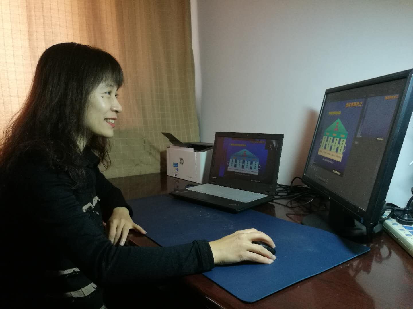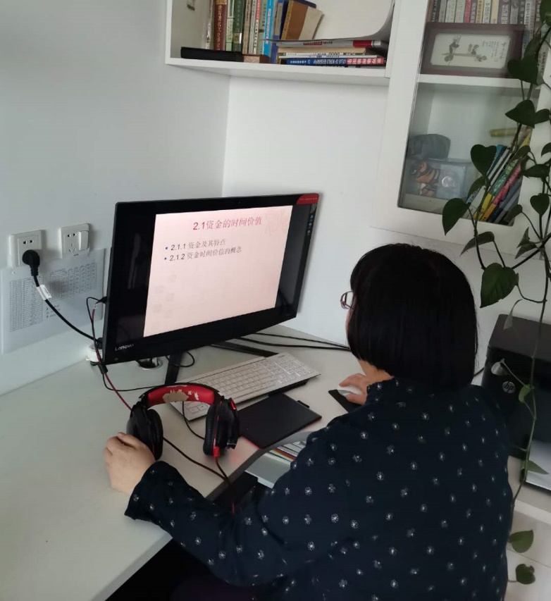 【刘军】刘军老师当“主播”已经一个多月了,已经逐步适应了网上讲课的节奏。她感觉虽然网课比起来面对面的课堂有不便之处,但是也有方便的地方。做EXCELL操作的演示时,同学们可以通过回放看的更清楚、明了。课堂中听不懂的地方,也能通过回放弄明白。不方便的地方是画图时没有粉笔在黑板上那么便捷,为了在课堂上效果更好,刘老师特地购买了手写笔和麦克,多少能缓解一下不便。