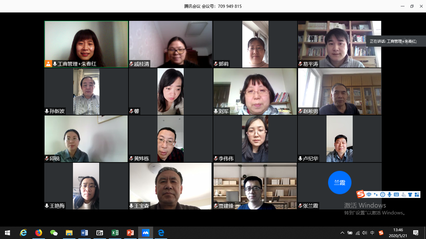 5月21日中午,工商管理专业就本科毕业论文、课程考核和实习实训等工作在腾讯会议组织召开了本科工作研讨会。工商1601班班导师孙新波、组织管理系主任张兰霞、技术与经济管理系主任易平涛、工商管理本科课程项目主任朱春红、工商管理专业全体教师共计16人参加了本次视频会。会议由朱春红主持。