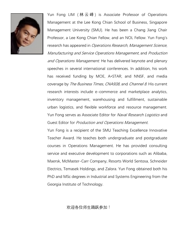 邀请新加坡管理大学李光前商学院林云峰副教授学术报告