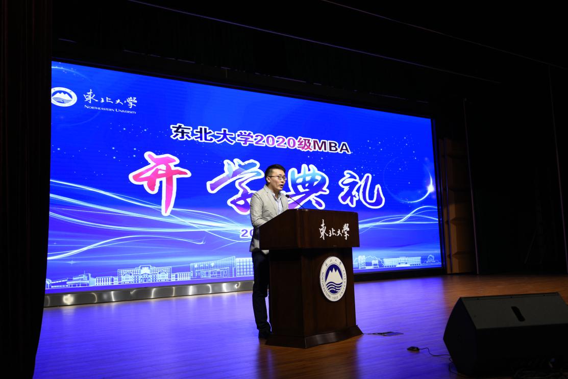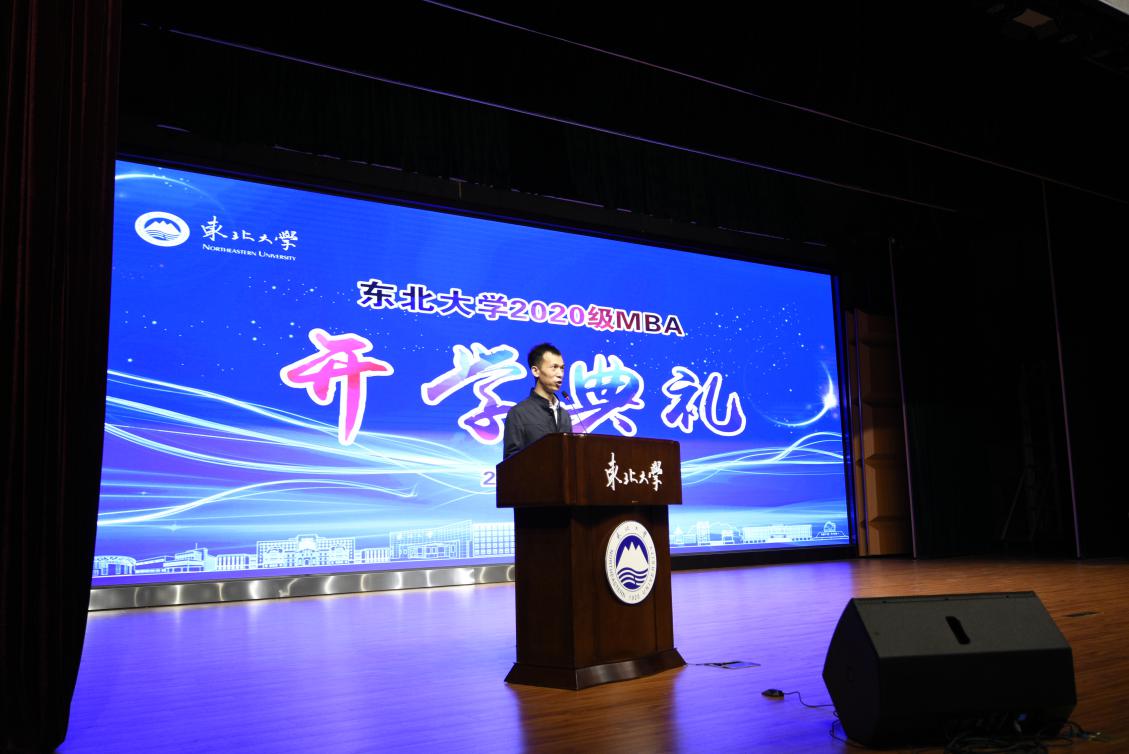第十七届MBA联合会主席赵东阳代表在读MBA学员发言。赵东阳总结了第十七届MBA联合会过去一年所做的工作,除了承袭传统,在突如其来的疫情背景下,第十七届MBA联合会积极与武汉高校MBA联盟沟通并录制加油视频;成立东大MBA抗疫志愿服务队,深入社区一线并参与辽宁赴鄂医护人员家属帮扶;组织MBA联合会线上大讲堂,邀请嘉宾分享疫情防控相关知识,扩大了东大MBA的影响力。希望新生们再接再厉,积极参与联合会建设,不断将东大MBA联合会发扬光大。