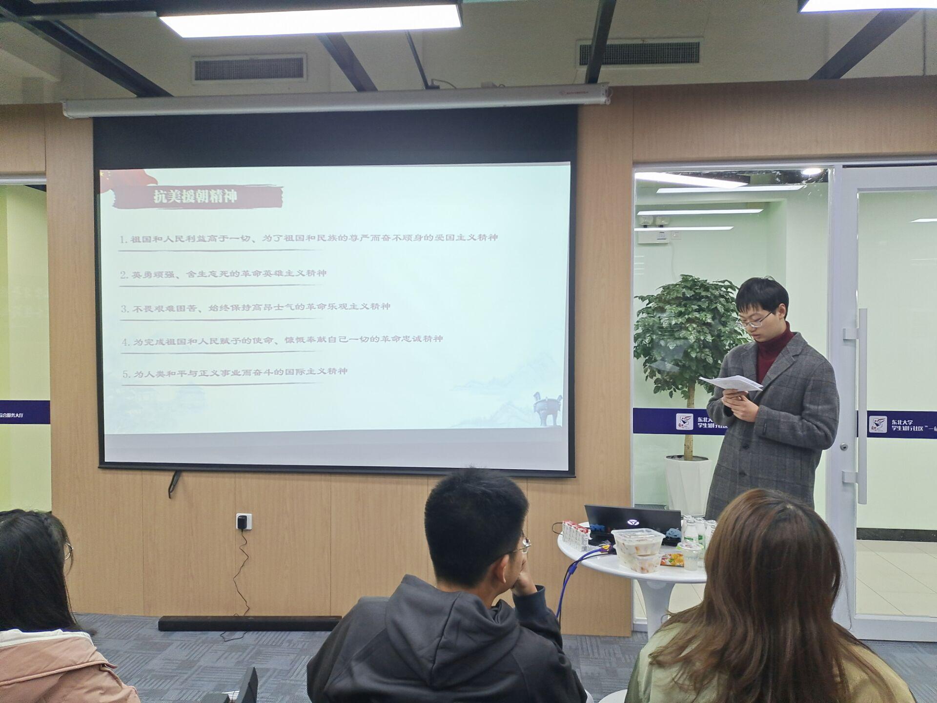 本次活动共分为三个部分。第一部分为“爱东大,校史校情在我心”。侯文静学姐对同学们进行了红色教育,并简述了我校的校史校情。红色精神早已深深根植在东大人的心中。东大文化的代表就是“实干、报国、创新、卓越”,在近百年的办学历程中,东大始终坚持与党国发展和民族复兴同向而行。杨老师强调,同学们要尽快适应大学生活,充分利用大学的宝贵时间提高本领增长才干,以期为祖国的发展贡献力量。她在讲话中指出,一些同学在升学之后思想松懈,成绩每况愈下,甚至出现挂科情况,这是对自身要求不够严格所致,作为大一新生应自律自强,做积极向上的东大人。