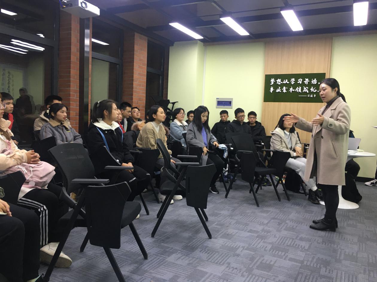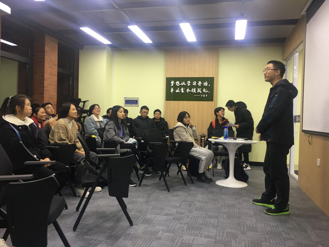 最后,辅导员杨光就学生立德修身、专业选择、学业规划、就业等问题进行总结发言,鼓励同学们多多增长才干,提高自己的综合素质,让大学四年变得有意义有追求。