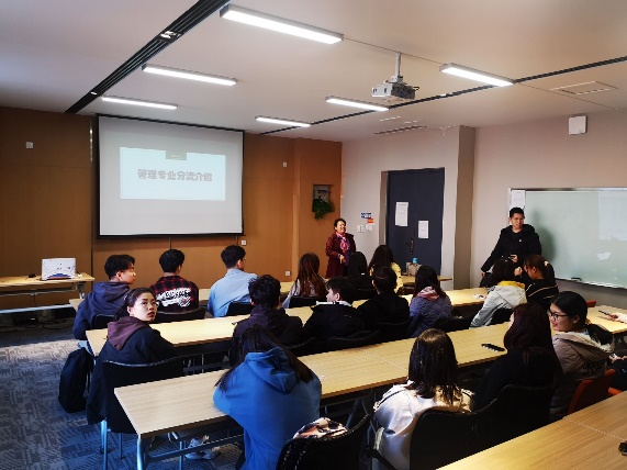 这次班导师见面会主要是分三个流程:班导师自我介绍、相关专业分流、同学提问环节。在相关专业分流环节,陈老师将每一个专业和自己的切身经历结合,同学们不仅聆听了一段故事,也更好地明确了同学们的方向。