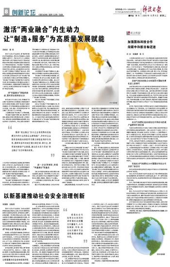《科技日报》创新论坛版于2020年12月8日刊发新葡的京官网孙新波教授与博士生钱雨合作文章:《激活“两业融合”内生动力 让“制造+服务”为高质量发展赋能》。党的十九届五中全会提出,要“推动现代服务业同先进制造业、现代农业深度融合,加快推进服务业数字化”。早在201911月,由国家发展改革委等15部门就联合印发《关于推动先进制造业和现代服务业深度融合发展的实施意见》(以下简称《实施意见》),“两业融合”(先进制造业和现代服务业深度融合发展)是我国供给侧结构性改革的主要内容,也是建设现代化经济体系,发挥“中国制造+中国服务”组合效应,实现制造业高质量发展和制造强国建设的内在要求与必然选择。《实施意见》中对“两业融合”模式、融合路径以及融合主体作用提出明确指示。“两业融合”的关键在于发挥数字技术与数字经济优势,提升先进制造业与现代服务业发展水平并促进两者融合。随着我国数字化转型发展步入快车道,这无疑为实现深层次的“两业融合”提供了绝佳历史机遇。