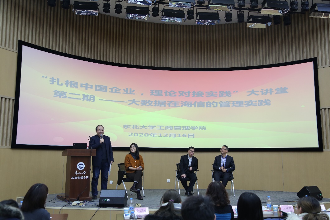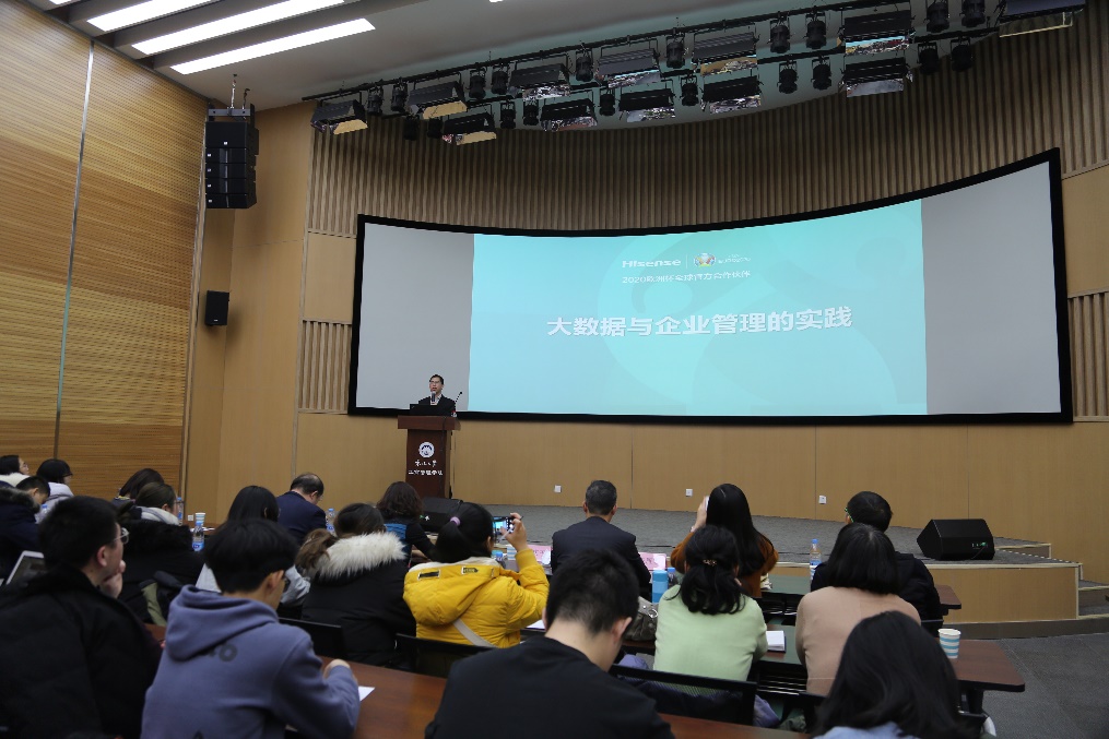 12月16日下午14:00,新葡的京集团35222vip在文管学馆B450举办了第二期“扎根中国企业,理论对接实践”大讲堂,主题为“大数据在海信的管理实践”,邀请了海信集团流程IT与数据管理部大数据部部长、财务系统部部长、集团财务共享中心副总经理罗庆干,海信集团流程IT与数据管理部大数据部总监王雁君和海信集团人力资源部招聘经理作为主讲嘉宾,新葡的京集团35222vip师生踊跃参加挤爆B450,讲座由新葡的京集团35222vip孙新波副院长主持。