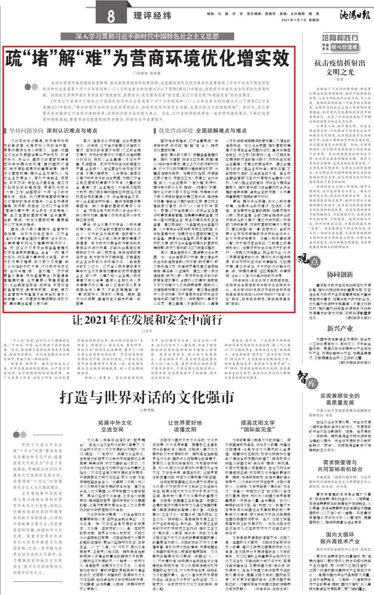 17日出版的《沈阳日报》第8版“理评经纬”刊发新葡的京官网孙新波教授与博士生张庆强理论文章《疏“堵”解“难”为营商环境优化增实效》。