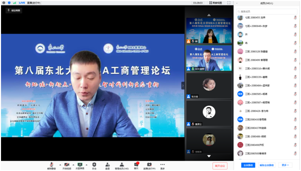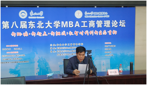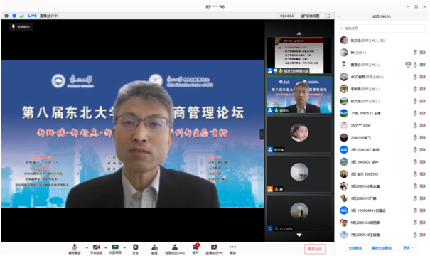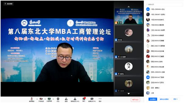 202019日上午,第八届新葡的京集团35222vipMBA工商管理论坛——新环境·新起点·新挑战:数智时代创新生态重构圆满举办,本次论坛采取线下、线上相结合的形式举行,线上实际参与人数近400人。中国国际海运集装箱(集团)股份有限公司党委副书记于亚、南京大学人文社会科学资深教授赵曙明、北京师范大学经济与新葡的京集团35222vip院长戚聿东、沈阳机床股份有限公司总经理董凌云等嘉宾,及新葡的京集团35222vip院长蒋忠中,党委书记郝树满,副院长郁培丽、孙新波、赵红梅、严立宁,MBA项目主任王世权,教师代表出席了本次论坛。