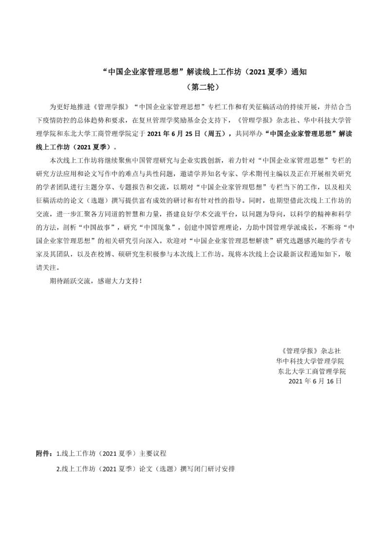 “中国企业家管理思想”解读线上工作坊(2021夏)第二轮通知