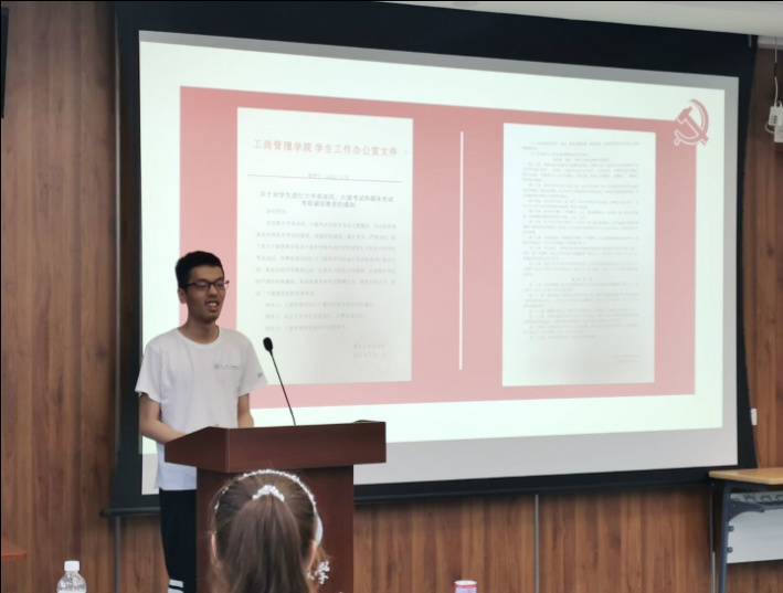 临近期末考试,副班长彭子鉴带领同学们再次认真学习考风考纪教育文件,加强班级成员诚信考试教育,严肃班级成员考风考纪。
