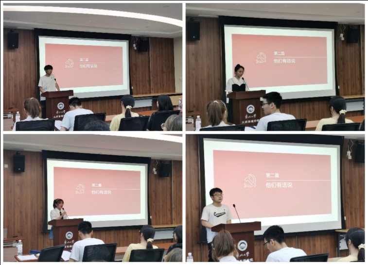在“他们有话说”环节,班级入党积极分子就自身学习党史后的感悟进行发言,向同学们分享自己的党史学习经历,激励班级成员牢记初心使命、在学习生活中时时刻刻紧跟党走。