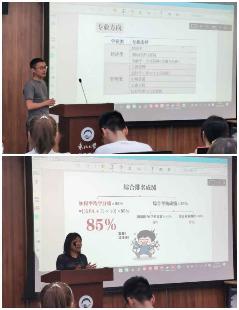 黄祎和杨光分别就即将到来的专业方向选择为班级成员进行详细的解答,围绕选择方式、相关程序以及注意事项进行解读,提醒同学们在学习生活中要注重“德、智、体、美、劳”全面发展。