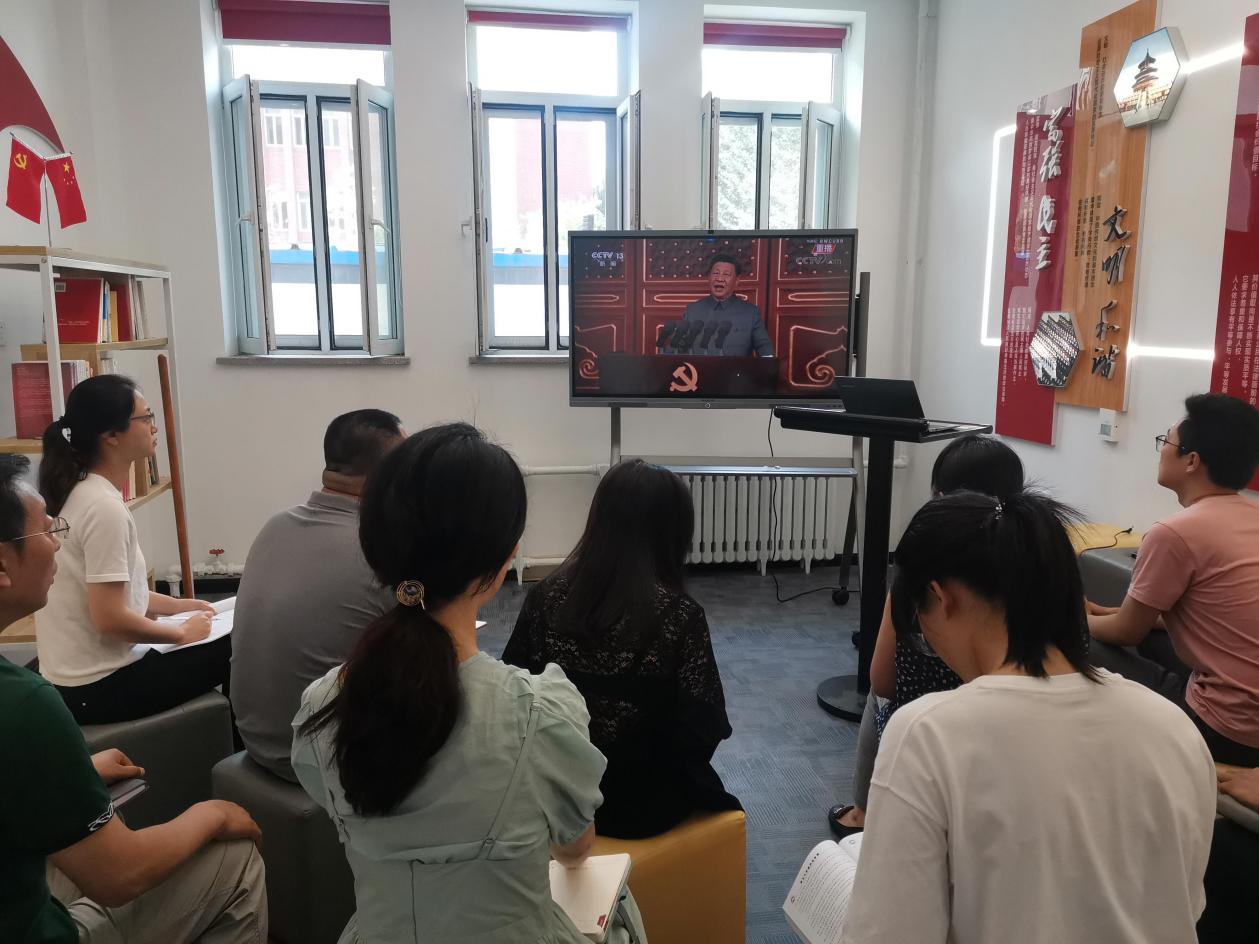 会上,支部全体党员共同学习习近平总书记在庆祝中国共产党成立100周年大会上的讲话精神。杨光对支部2021年上半年党史学习教育情况进行了总结汇报,支部围绕党史学习教育和学生工作实际,打造“党建+”“网络+”“思政+”“文艺+”党史学习新模式,聚力做强红色阵地、落实师生关切、用活红色资源、培优红色载体,推动党史学习教育更入心、接地气、有活力、见成效;从党史学习教育中汲取智慧力量,发挥支部战斗堡垒作用。