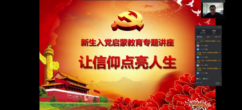 新葡的京集团35222vip党委组织员王全彬担任第一讲《入党启蒙教育——让信仰点亮人生》主讲嘉宾。王全彬围绕新时代大学生确立马克思主义科学信仰的重要性;加入中国共产党的意义;发展党员的条件和程序;为加入中国共产党所做出的准备进行讲解。讲述了六个七一勋章获奖人的感动事迹;带领新生向防疫人员、抗洪人员等“最美逆行者”致敬。王全彬给予新生三点建议:端正入党动机,主动靠拢党组织,加强自我修养,做到自我完善。