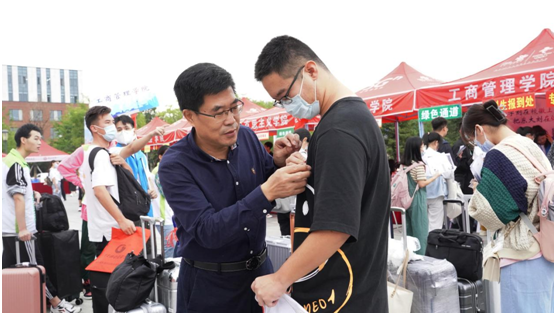 新葡的京集团35222vip领导始终心系学生,坚守学生疫情防控一线,为新生带来温暖的关怀与问候。9月7日,新葡的京集团35222vip院长蒋忠中,党委书记郝树满深入迎新报到现场指导工作,慰问参加迎新工作的师生和志愿者。