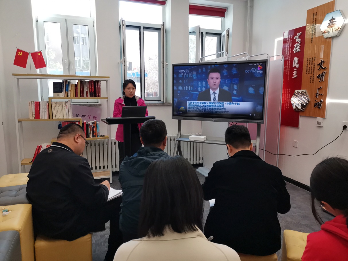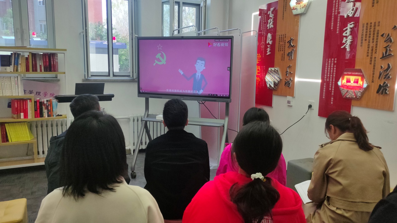 学办党支部书记杨光详细介绍了此次党课学习的背景及要求,通过观看视频及文件解读的学习方式,支部党员共同学习了习近平总书记在2021年秋季学期中央党校(国家行政学院)中青年干部培训班上的重要讲话精神、习近平总书记在中央人才工作会议上的重要讲话精神和习近平总书记给全国高校黄大年式教师团队代表的回信精神。杨光指出支部党员要在深入学习贯彻习近平总书记“七一”重要讲话精神基础上,将此次党课学习内容作为当前和今后一段时间党史学习教育的重要内容,深刻领会、学深悟透、见行见效。最后,支部全体成员认真学习了《中国共产党党徽党旗条例》,并结合工作实际情况进行了自查。