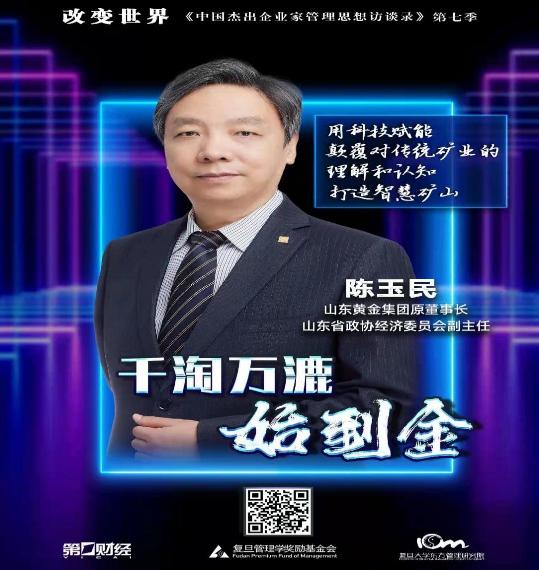 据悉,《改变世界·中国杰出企业家管理思想访谈录》是第一财经联合复旦大学管理学奖励基金会、复旦大学东方管理研究院等合作开展的项目。该项目旨在将中国优秀企业家具有特色的管理思想和卓有成效的管理实践归纳总结成中国特色的管理理论,以记录式电视专题片形式传递东方管理智慧。节目迄今已先后采访过宁高宁、董明珠、刘永好、施振荣等多位知名企业家,本期访谈节目邀请山东黄金集团原董事长陈玉民先生携手孙新波教授就山东黄金企业做了专题访谈,扫码可观看节目详情